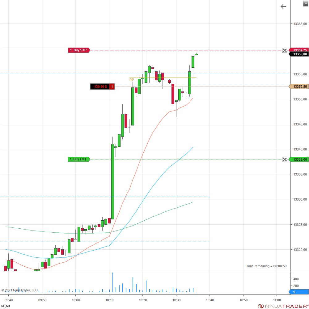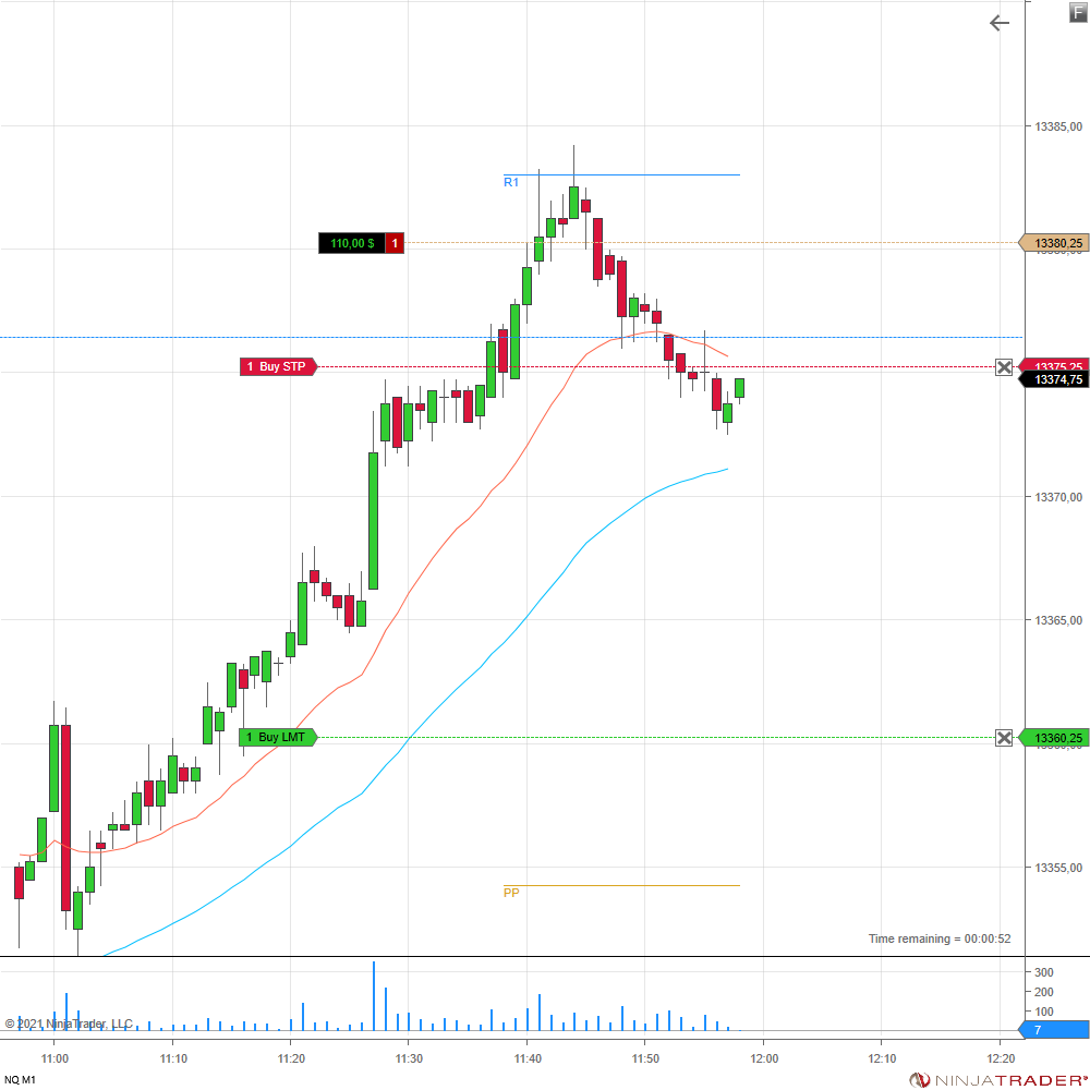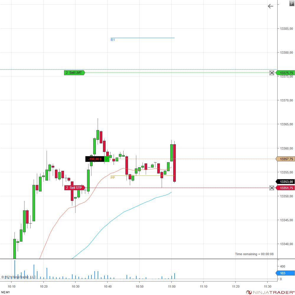 Heute ist mein bisher schlechtester Trading-Tag in dieser Evaluierung, mit dem ich einiges an Gewinn wieder abgeben muss. Dem Stop-Hunt zum Opfer gefallen musste ich bei zwei Trades zusehen, wie sie um nur einen Tick augestoppt wurden. Die Trade-Ideen wären durchaus aufgegangen. Mental nicht einfach zu verkraften, aber in solchen Momenten lernt man Selbstbeherrschung.