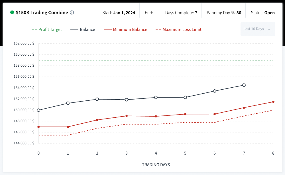 Mit zwei Longs konnte ich heute Morgen bzw. Mittag meiner Trading-Combine bei Topstep einen Profit von 1.059$ machen.