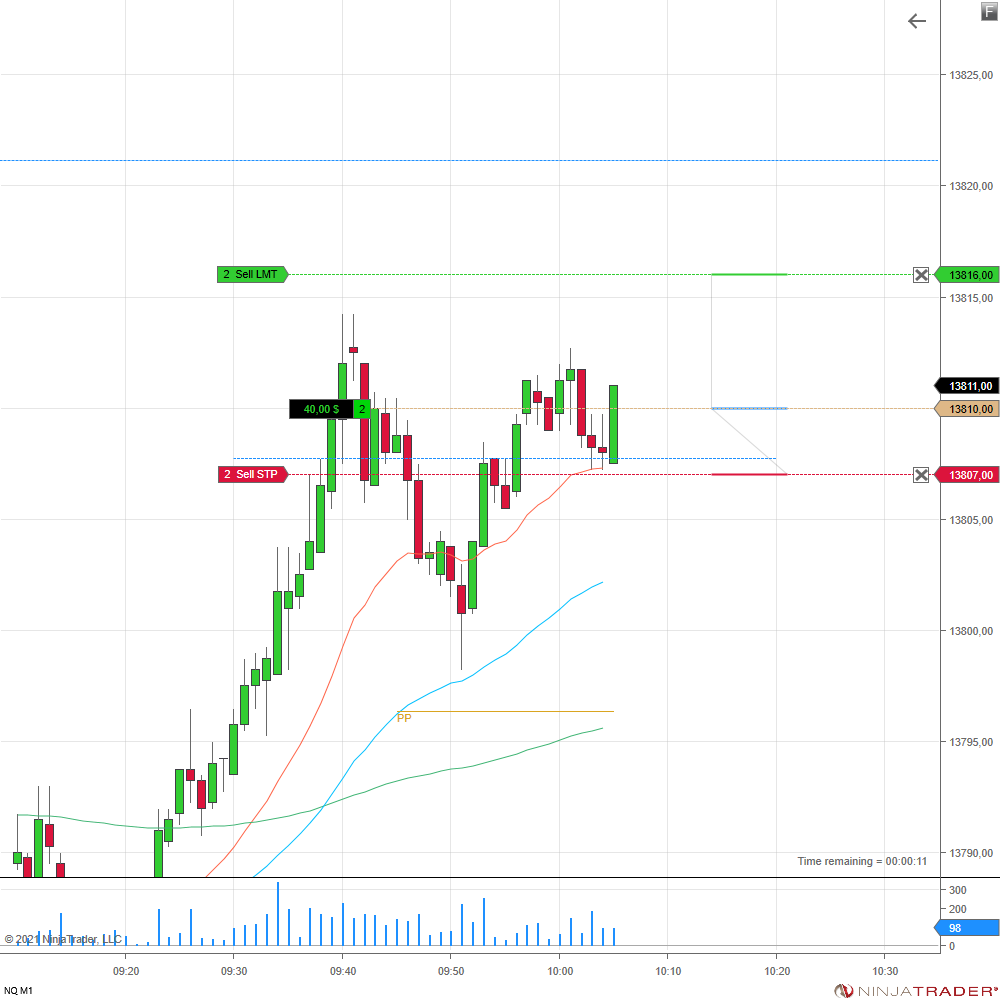 Der Trade lief wie erhofft gut an und zog schnell vom Einstiegspreis weg. Auf den letzten Ticks fehlte dann zunächst die Puste. Da ich einen Rücksetzer nicht mitgehen wollte, habe ich den Stop-Loss eng nachgezogen. In diesem ist der Trade dann gelandet.